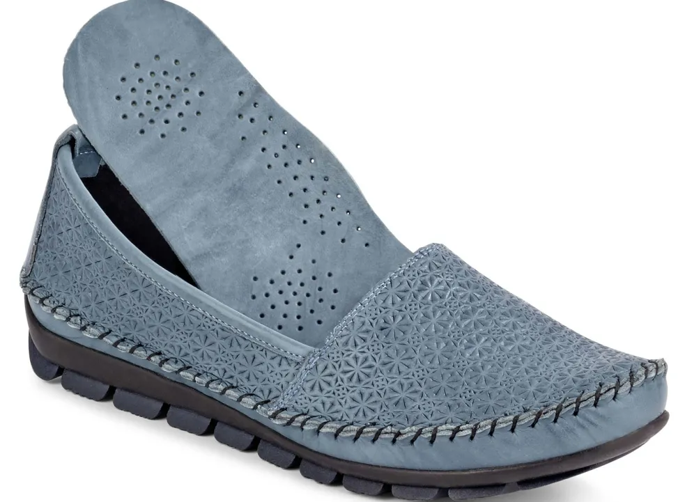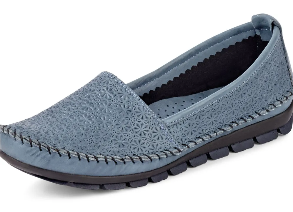 Gemini Mokassin-Slipper mit toller Prägung in Jeansbleu und in Größe 41.