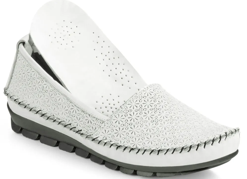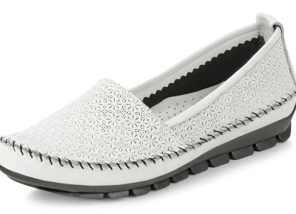 Mokassin-Sipper aus geprägtem Rind-Nappaleder: in Weite G, Textilfutter, herausnehmbares Lederfußbett, leichte TR-Profilsohle, 15 mm Keil