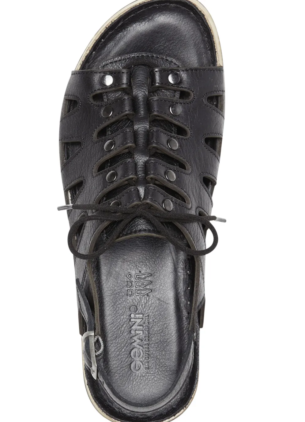 Gemini Sandale mit elastischer Zierschnürung in Schwarz und in Größe 36.