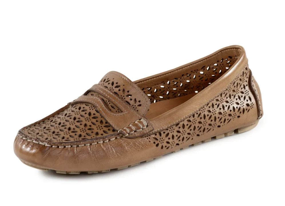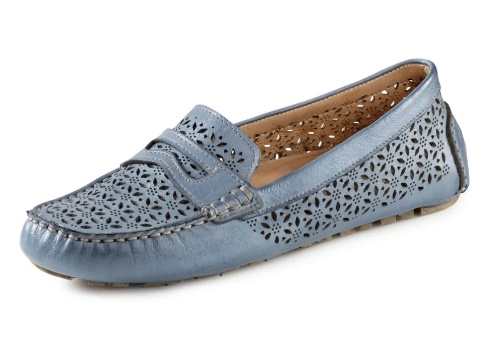Luftig perforierter Mokassin-Slipper aus schattiertem Nappaleder: Weite G, mit Lederspange, Lederfutter, herausnehmbarem Lederfußbett sowie Leder-Laufsohle mit geriffeltem Gummi-Profil