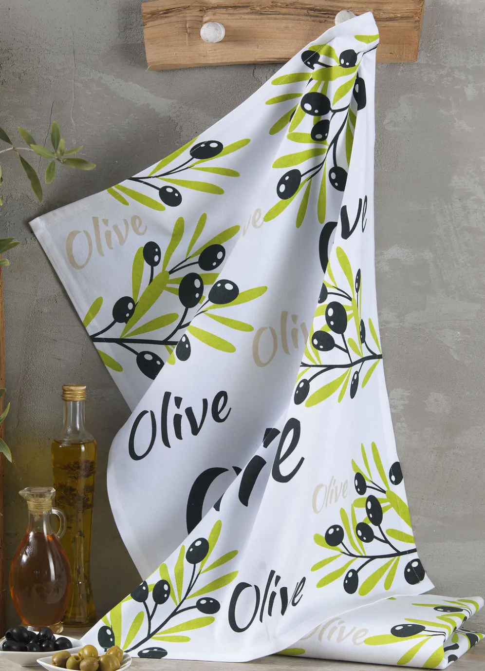 Diese bedruckten Geschirrtücher bringen mit ihrem charmanten Olivenmotiv ein mediterranes Lebensgefühl in Ihre Küche! Qualität: 100% Baumwolle. Waschbar bis 60 °C. Maße: je 50×70 cm