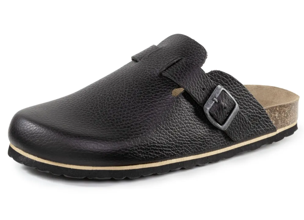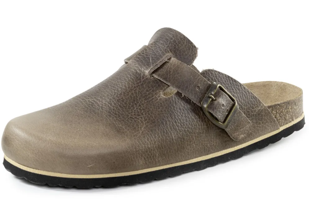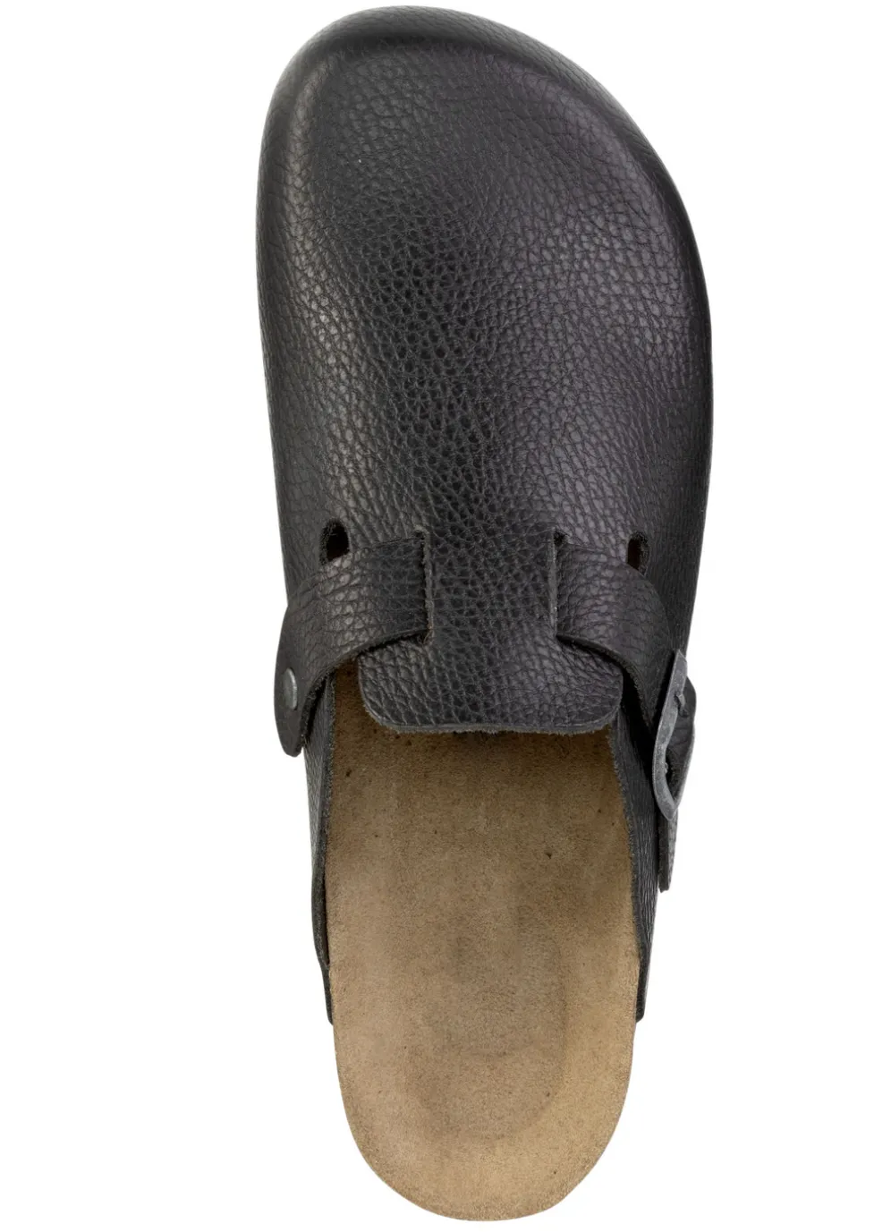 Clog von GINO GALANTE, aus schattiertem, genarbtem Rindleder, mit verstellbarer Spange: Weite H, Kork-Lederfußbett sowie EVA-Profilsohle