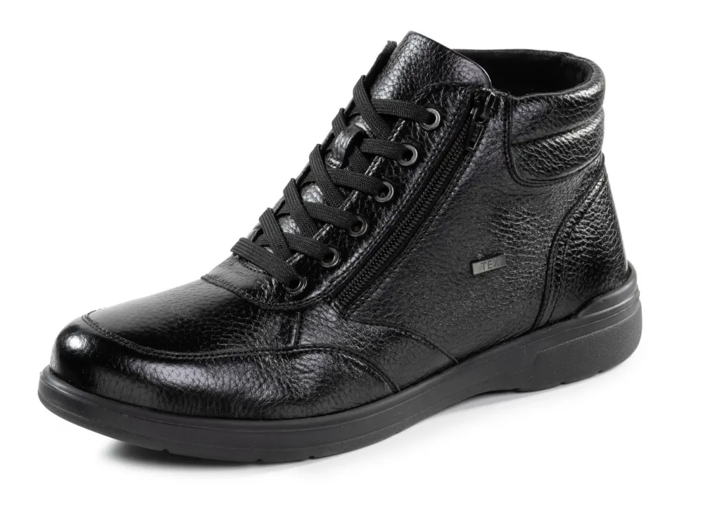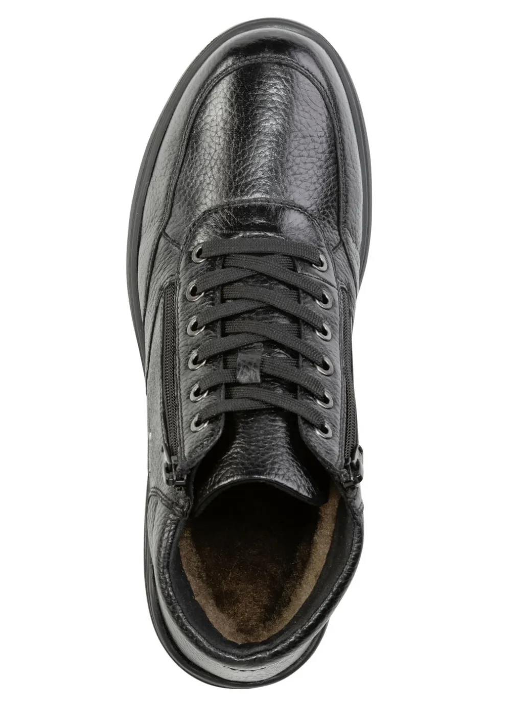 Schwarze Boots von GINO GALANTE, aus weichem, genarbtem Hirsch-Nappaleder, mit Klimamembrane ausgestattet: Schnürung, zwei praktische Seiten-Reißverschlüsse, kuscheliges Warmfutter und Decksohle aus 80% Polyester und 20% Wolle sowie leichte TPR-Profilsohle. Schafthöhe ca. 11 cm