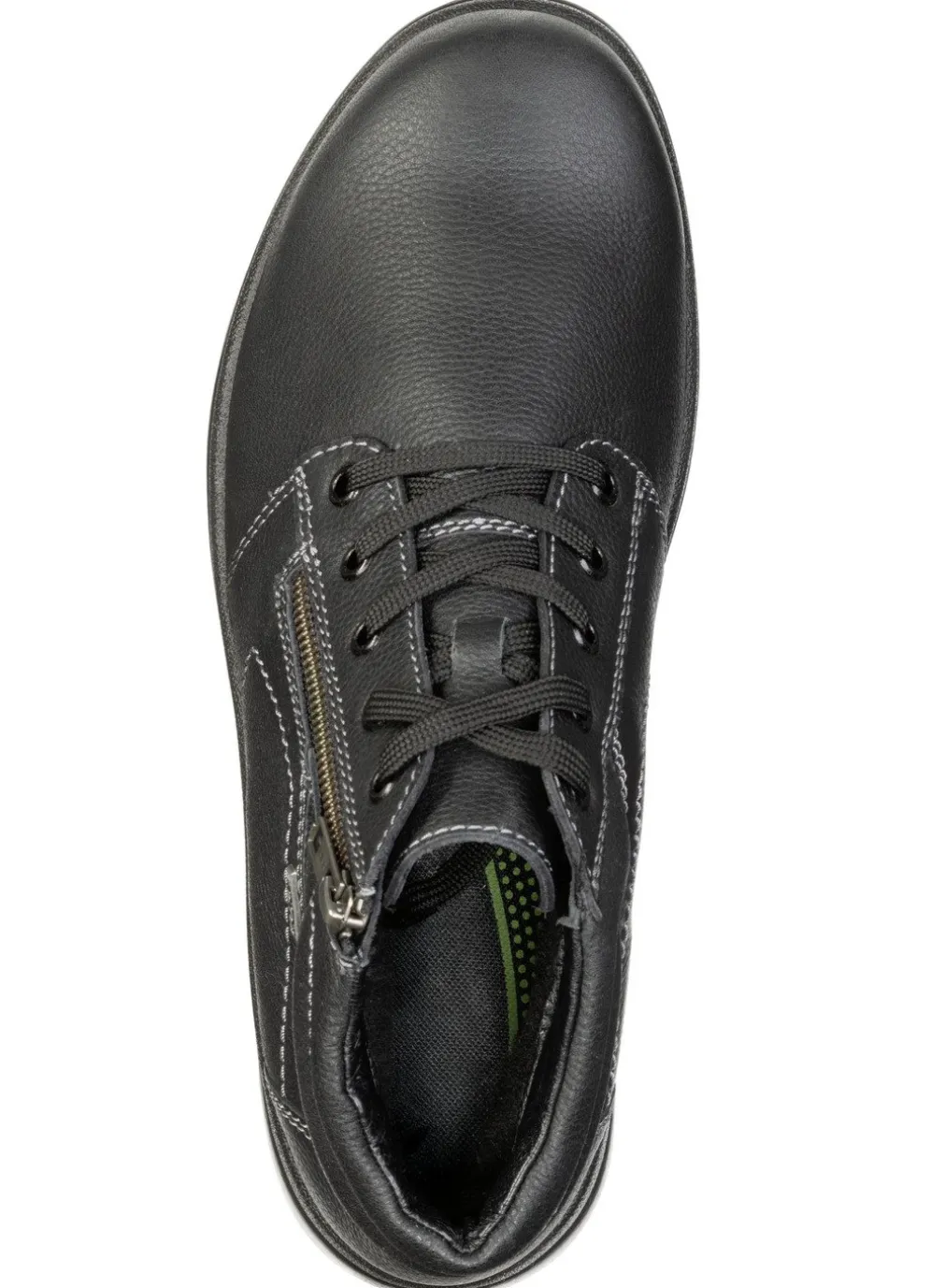 Schwarze Boots von GINO GALANTE, aus genarbtem Rind-Nappaleder, mit Klimamembrane ausgestattet: Weite H, Schnürung und Seitenreißverschluss, Warmfutter aus 100% Polyester, leichte PUR-Luftpolster-Profilsohle. Schafthöhe ca. 10 cm