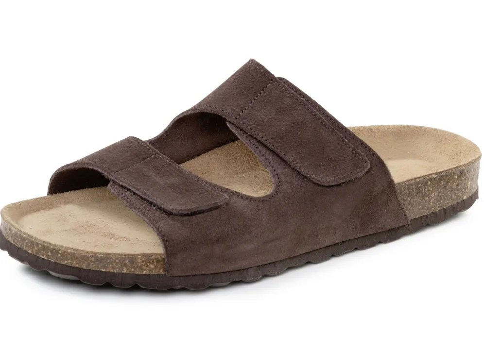 Pantoletten von GINO GALANTE, aus Veloursleder mit zwei verstellbaren Klettspangen: Weite H, gepolstertes Lederfußbett sowie leichte EVA-Profilsohle