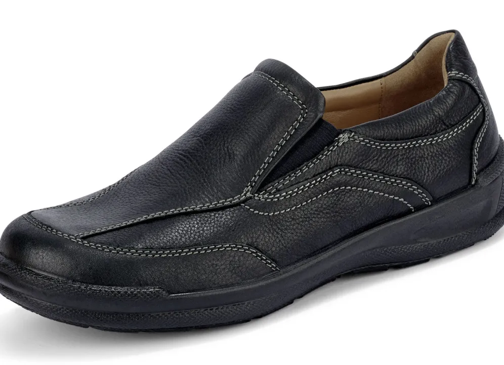 Schwarze Slipper von GINO GALANTE aus genarbtem Rind-Nappaleder: seitliche Gummizüge, ledergefüttertes Quartier, herausnehmbares, atmungsaktives Fußbett sowie leichte PUR-Luftpolster-Profilsohle