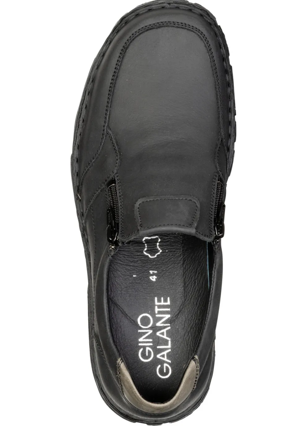 Schwarze Slipper von GINO GALANTE, aus gebürstetem Rind-Nubukleder mit Kontrast-Besatz: zwei Seitenreißverschlüsse, ledergefüttertes Quartier, herausnehmbares Lederfußbett sowie leichte Synthetik-Profilsohle