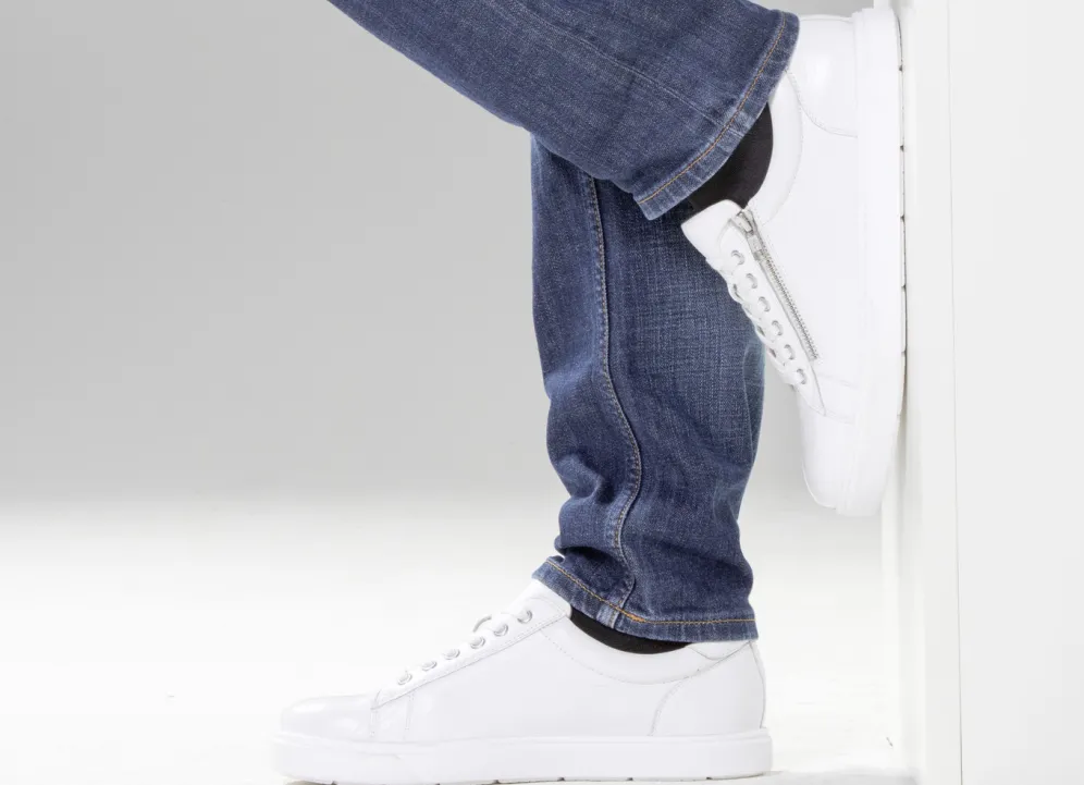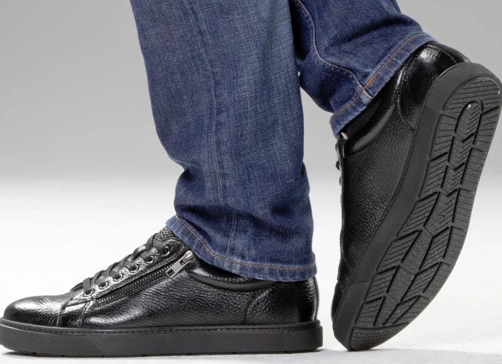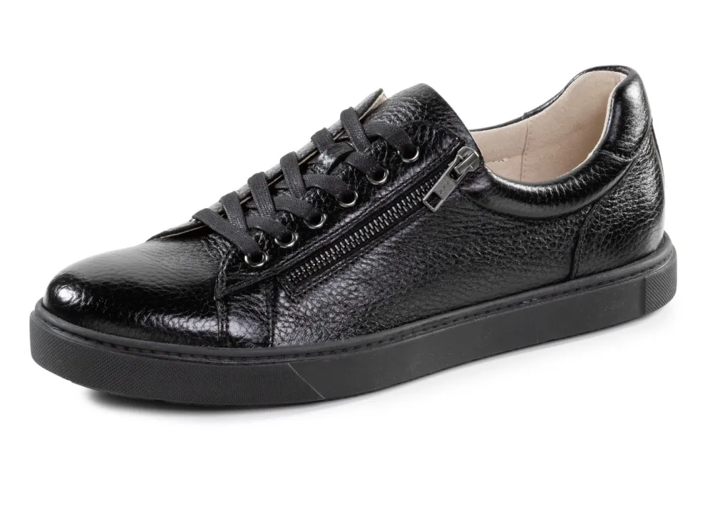 Sportive Sneaker von GINO GALANTE, aus bestem, genarbtem Hirsch-Nappaleder, mit Schnürung und seitlichem Reißverschluss: Futter, herausnehmbares Lederfußbett sowie leichte TPR-Profilsohle