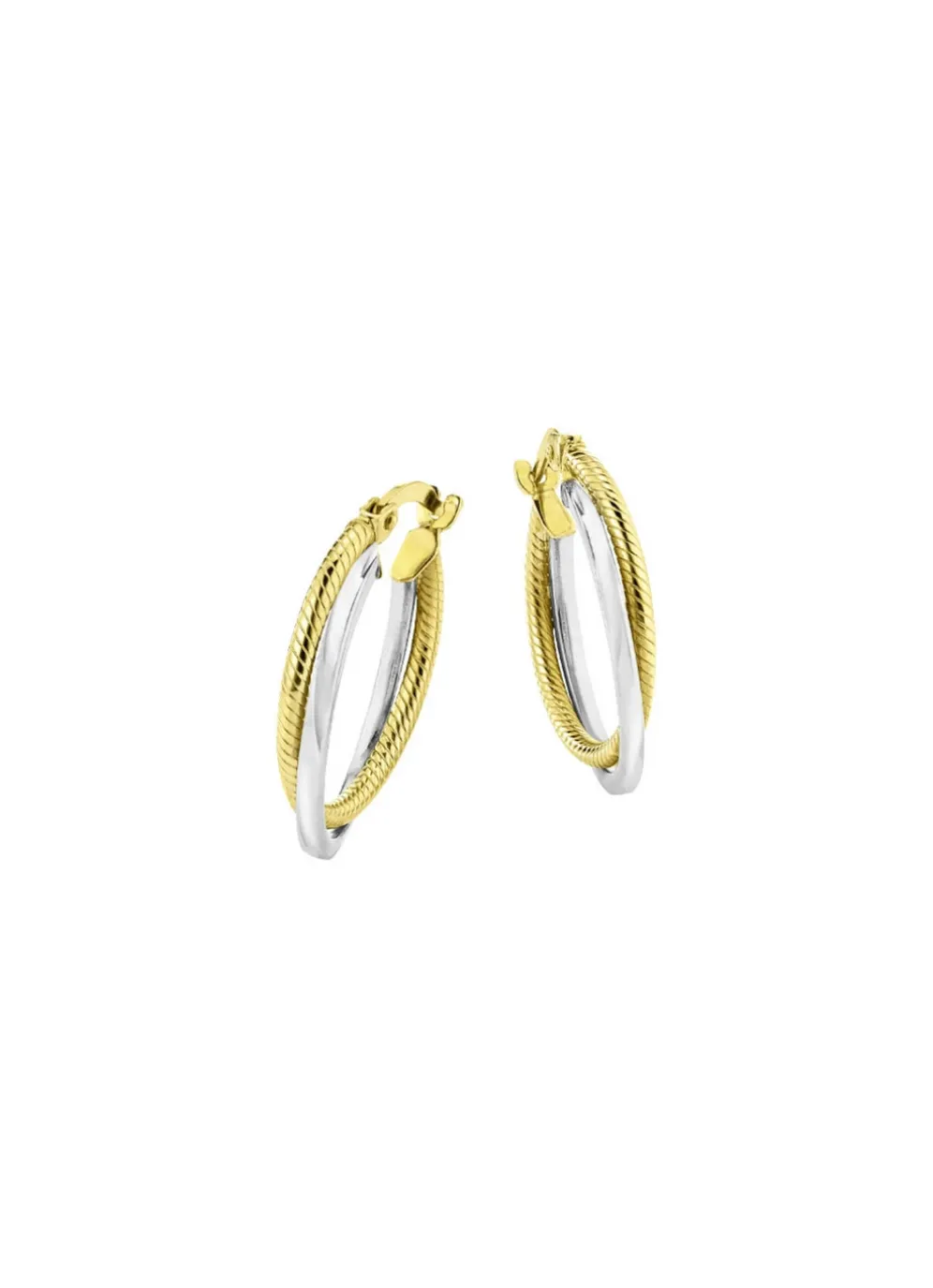 Glänzende Creolen in Bicolor, 2-reihig in der Legierung Gold 585/- fein.