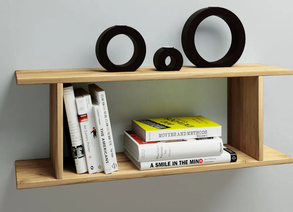 Kreatives Hängeregal (B80xH28xT20 cm), waagerecht oder senkrecht aufzuhängen. Einfacher Aufbau