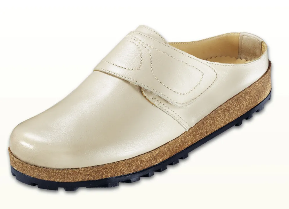 Bequemer Haflinger-Lederclog aus weichem Rindleder. Futter und Decksohle sind mit feinstem Kalbleder ausgestattet um Ihnen ein Höchstmaß an Qualität zu bieten. Weit zu öffnender Klettverschluss für eine optimale Anpassung an den Fuß. Strapazierfähige, rutschhemmende TR-Laufsohle.