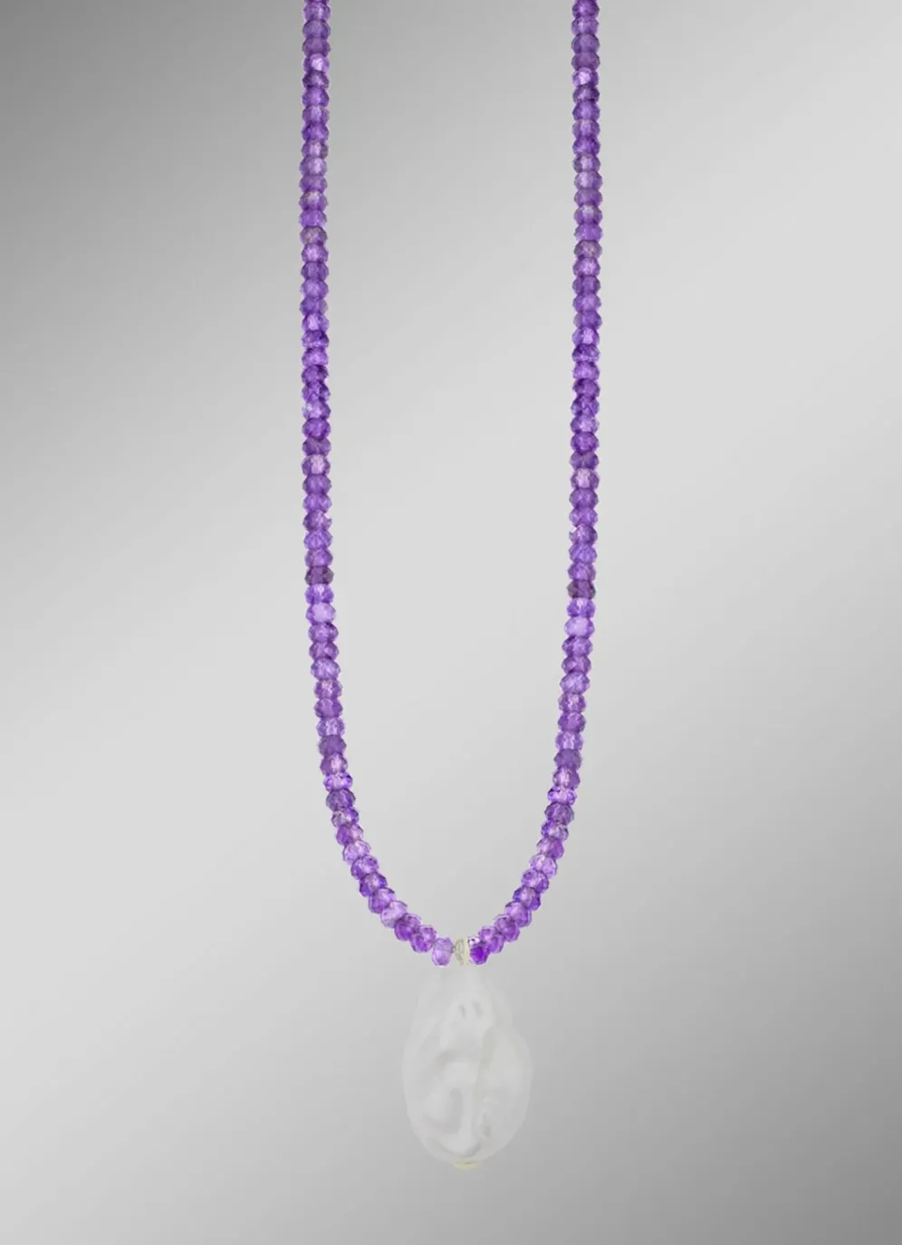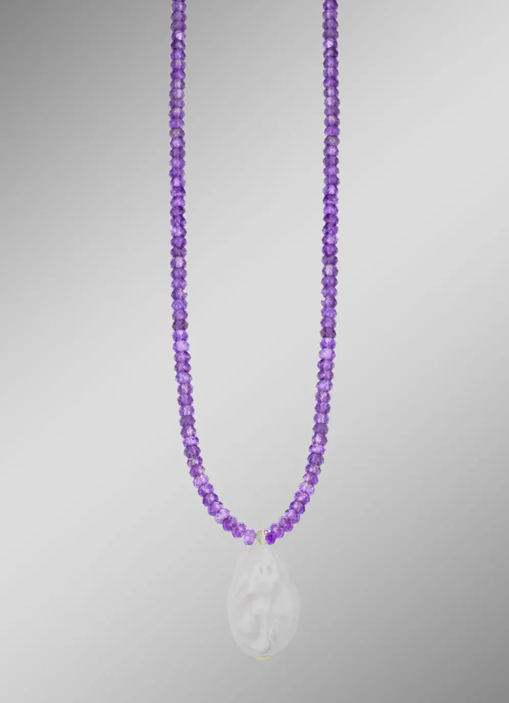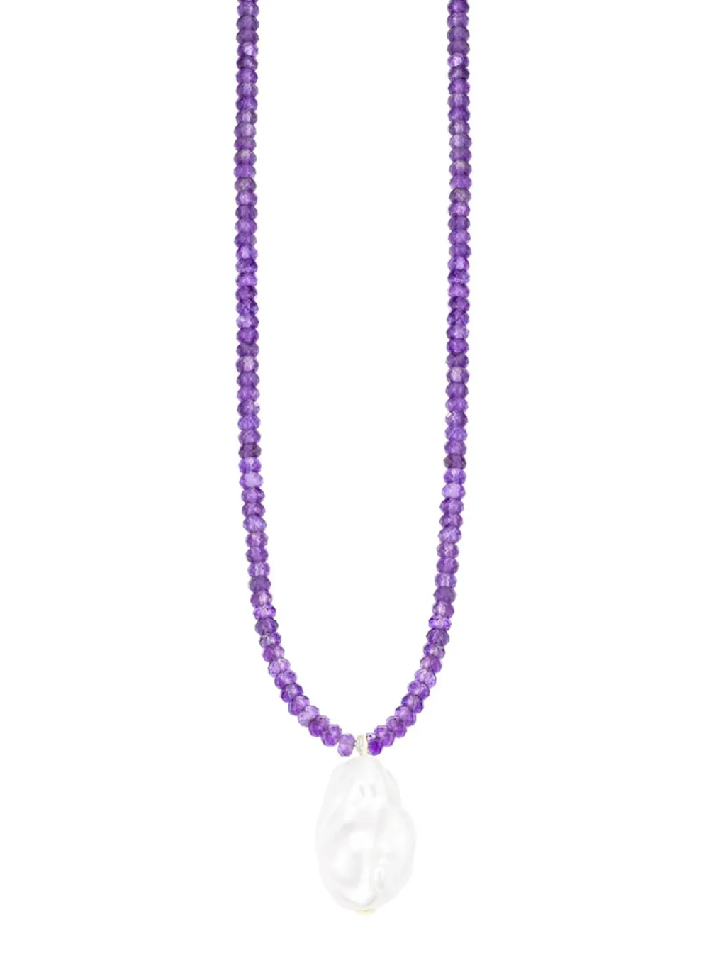 Verleihen Sie Ihrem Stil eine besondere Note mit unserer exquisiten Halskette aus echten 3 mm Amethyst und vergoldetem 925er Silber. Diese elegante Kette, 45 cm lang mit einer zusätzlichen Verlängerung von 5 cm, besticht durch ihre hochwertigen Materialien und das kunstvolle Design. Der Anhänger ist mit einer beeindruckenden Barock-Perle von 13-16 mm verziert, die jedem Outfit einen Hauch von Luxus und Raffinesse verleihen.