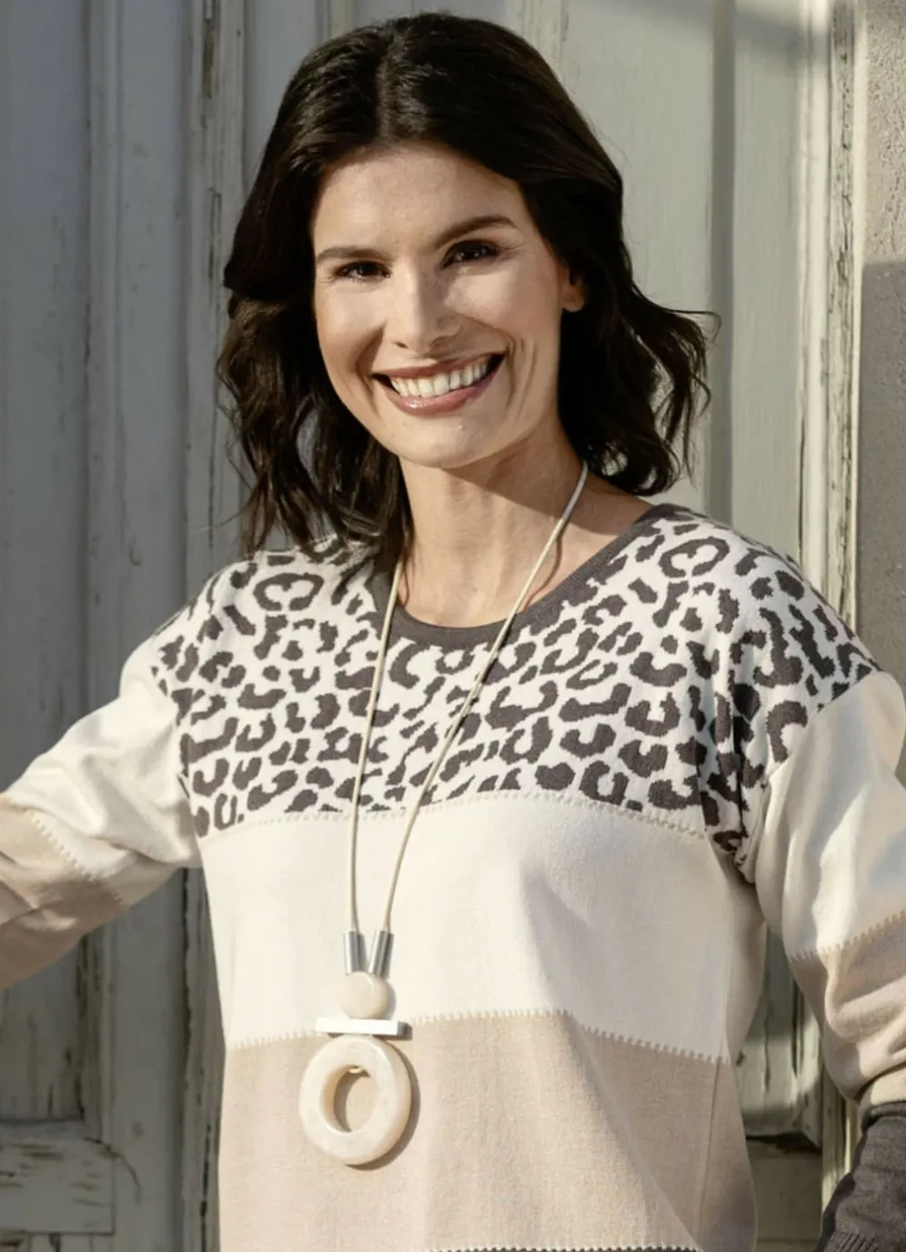 Halskette mit Anhänger in Wollweiss.
