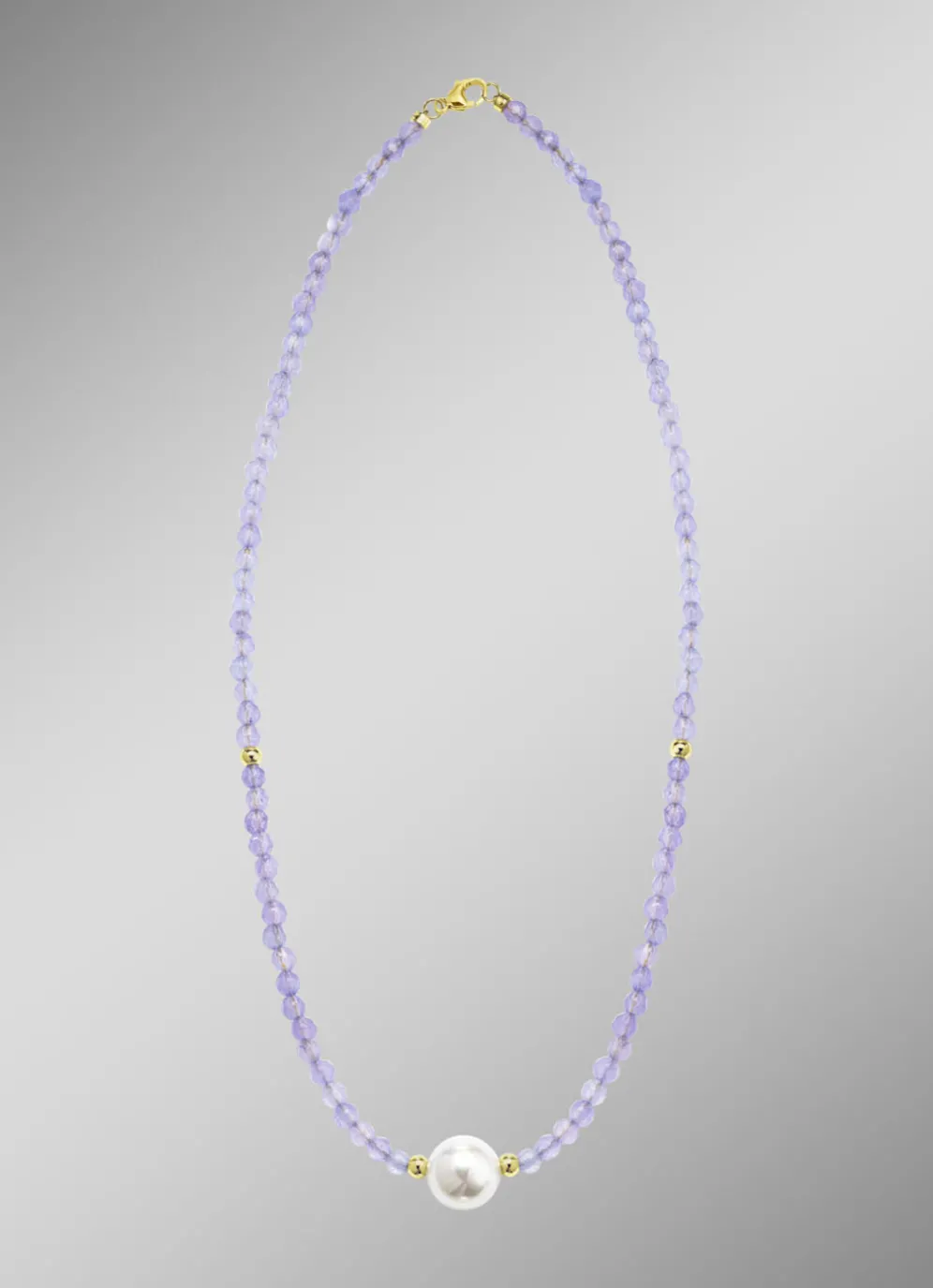 Halskette mit Perlenschimmer und Edelsteinglanz