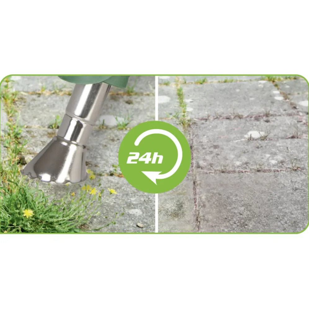 Sein 650-Grad-Celsius-Heißluftstrahl erhitzt das Unkraut bis in die Wurzeln und vernichtet so dessen Zellstruktur. Innerhalb eines Tages verwelkt das Kraut und kann dann weggekehrt werden. Die innovative Kegeldüse zielt genau auf die empfindlichste Stelle der Pflanze und zerstört sie. Machen Sie Ihre Beete, Gehwege, Terrassen und Pflastersteine frei von Unkraut!