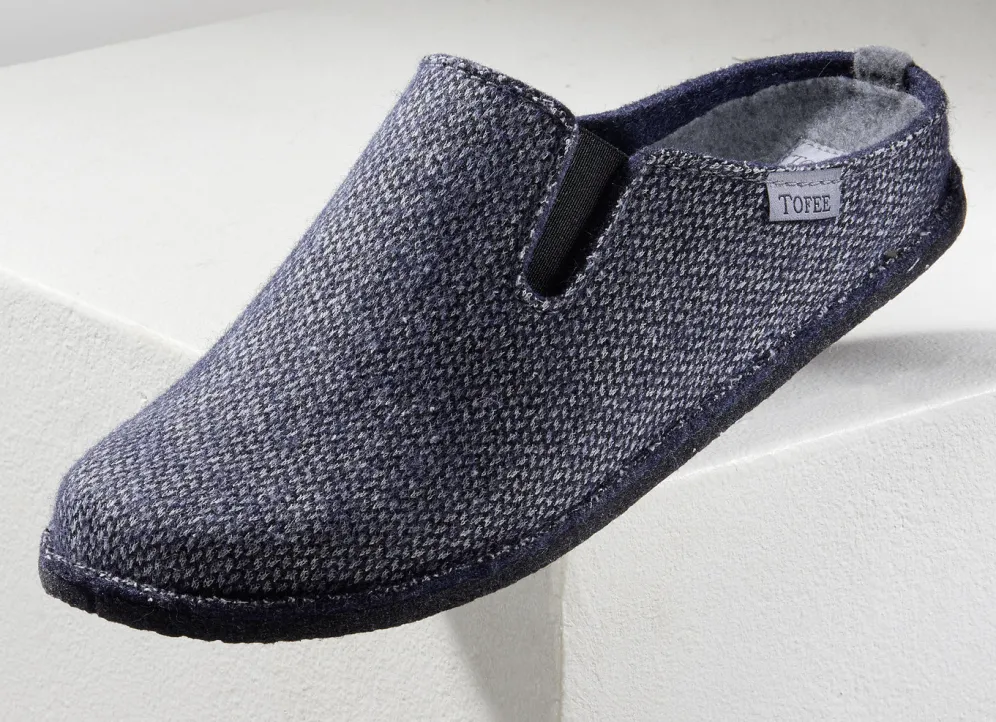 Bequemer und leichter Herren-Hausschuh für das ganze Jahr. Obermaterial aus strapazierfähigem Wollfilz. Mit eingearbeitetem Gummizug für eine angenehme Passform und Gemütlichkeit. Mit gummierter Filz-Laufsohle. Die angenehme Qualität: Wolle und Polyester. Gr. 39,40,41,42,43,44,45,46