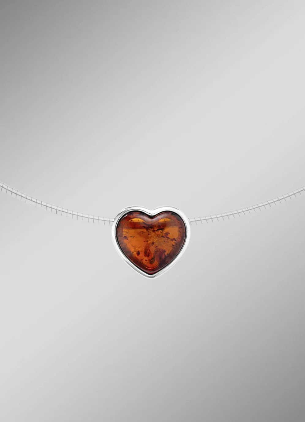 Herz-Anhänger mit Bernstein in der Legierung Silber 925/- fein.