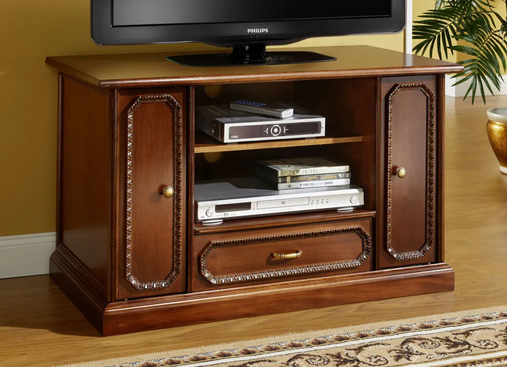 Hochwertige Möbelserie mit Echtholzfurnier in der Ausführung Kommode, 1-türig und in Nussbaum.