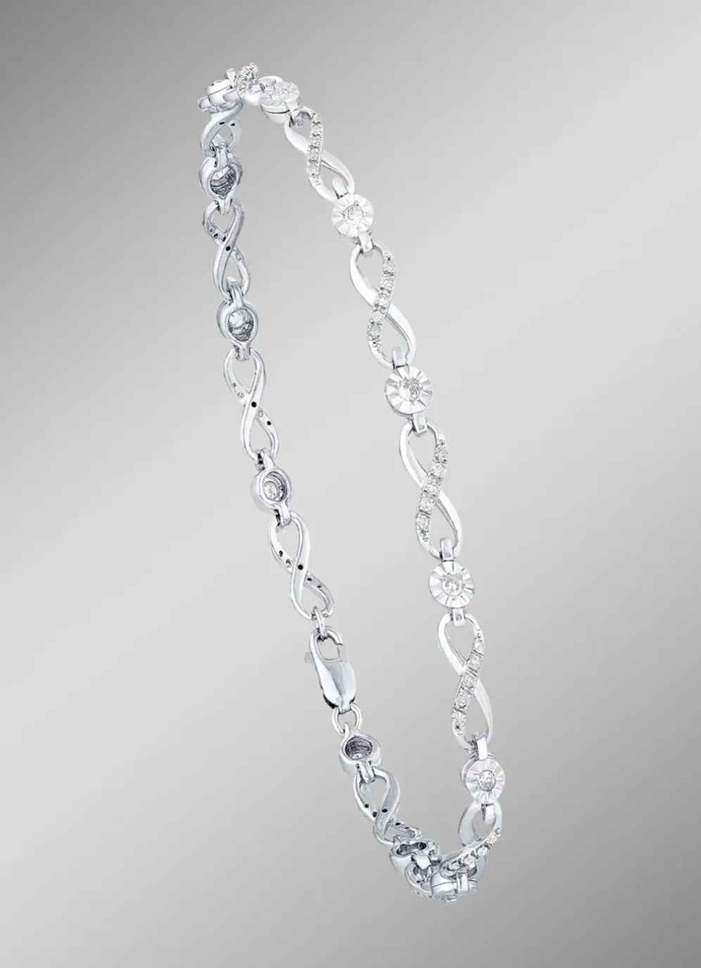 Mit diesem einzigartigen Armband verziert mit 12 funkelnden Brillanten und 60 Diamanten, zus. ca. 0,50 ct., in Weiß, Piqué 2 können Sie jedes Ihrer Outfits sichtlich aufwerten. Das 4 mm breite und 19 cm lange Schmuckstück aus Weißgold 585/- fein schmiegt sich angenehm an Ihren Arm und kann zu jedem erdenklichen Anlass getragen werden.