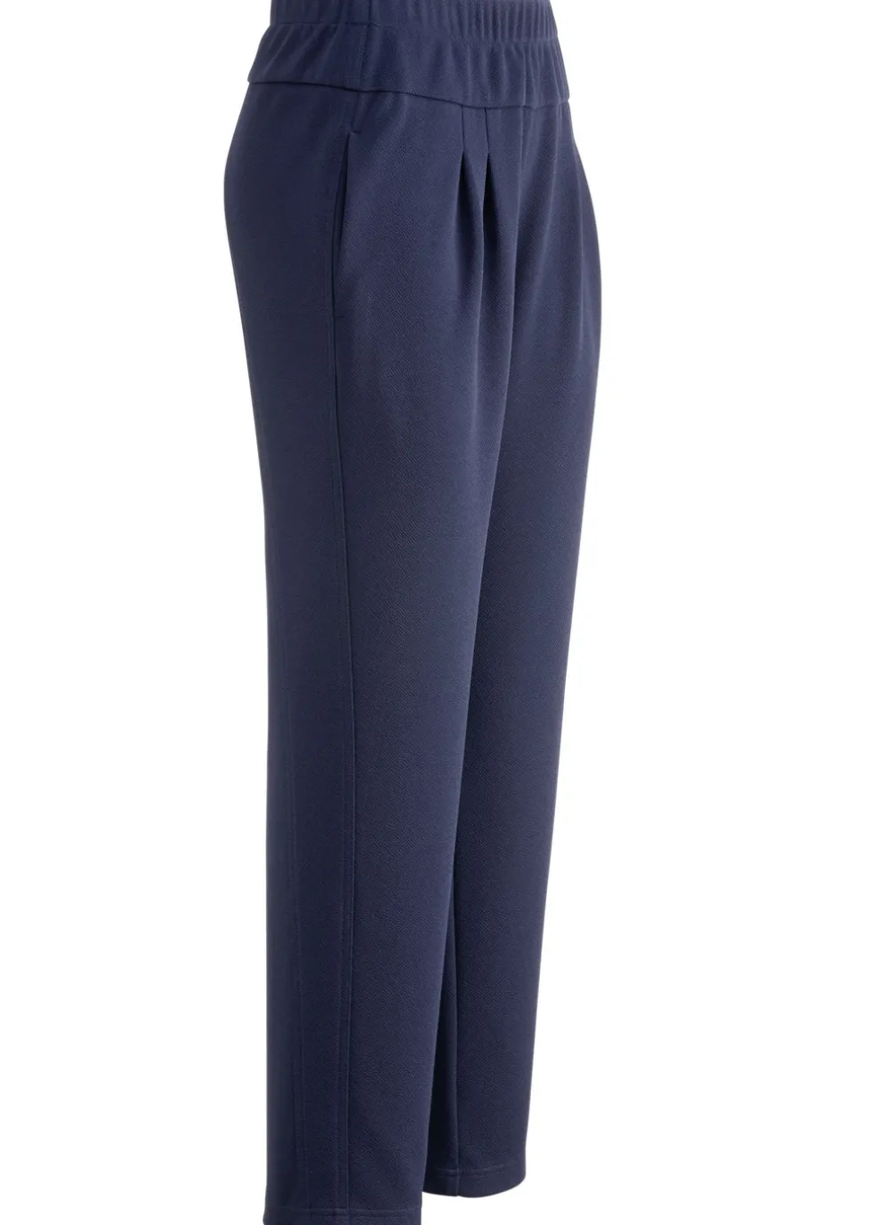 Ansprechende, knöchellange Hose in bequemer Schlupfform: Dehnbund rundum, Abnäher unterhalb des Bundes, Seitentaschen sowie figurgünstige Teilungsnähte im Rückteil. Innenbeinlänge ca. 71 cm, Fußweite ab 38 cm.