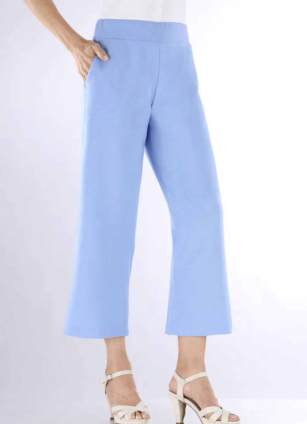 Hose in modisch verkürzter Länge in Hellblau Melange und in Größe 40.
