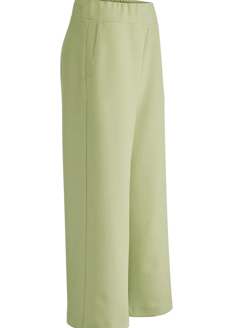 Angesagte Hose in modisch verkürzter Länge sowie bequemer Schlupfform mit elastischem Formbund rundum sowie Seitentaschen. Innenbeinlänge ca. 65 cm, Fußweite ab 58 cm.