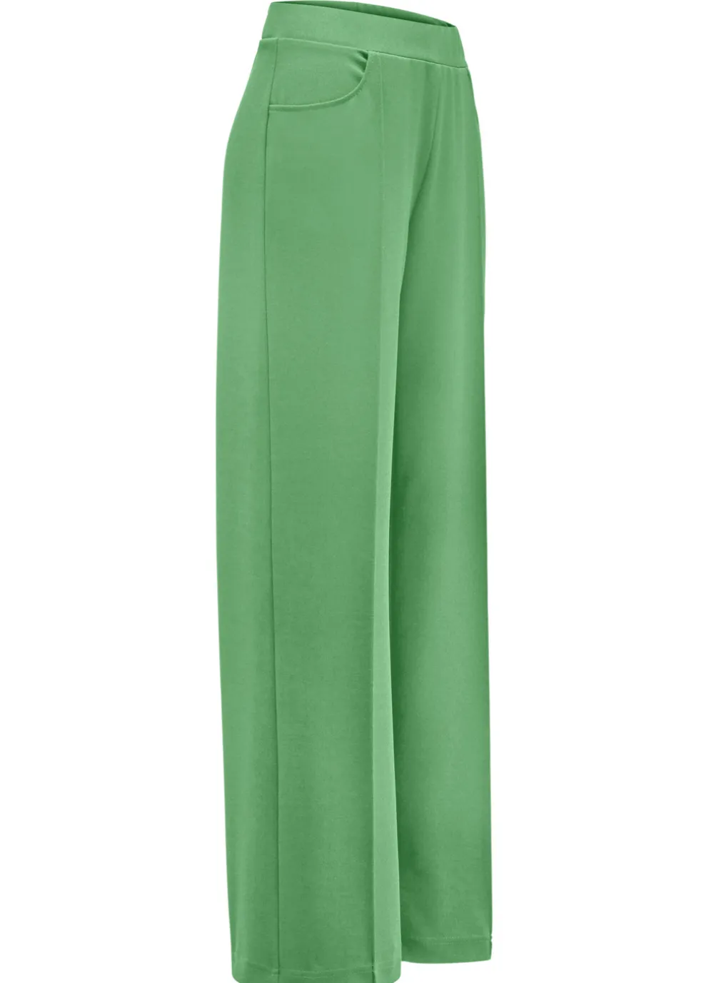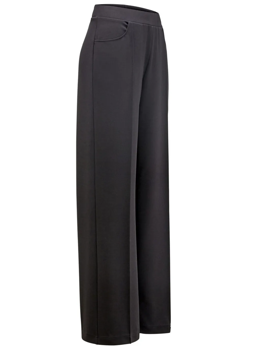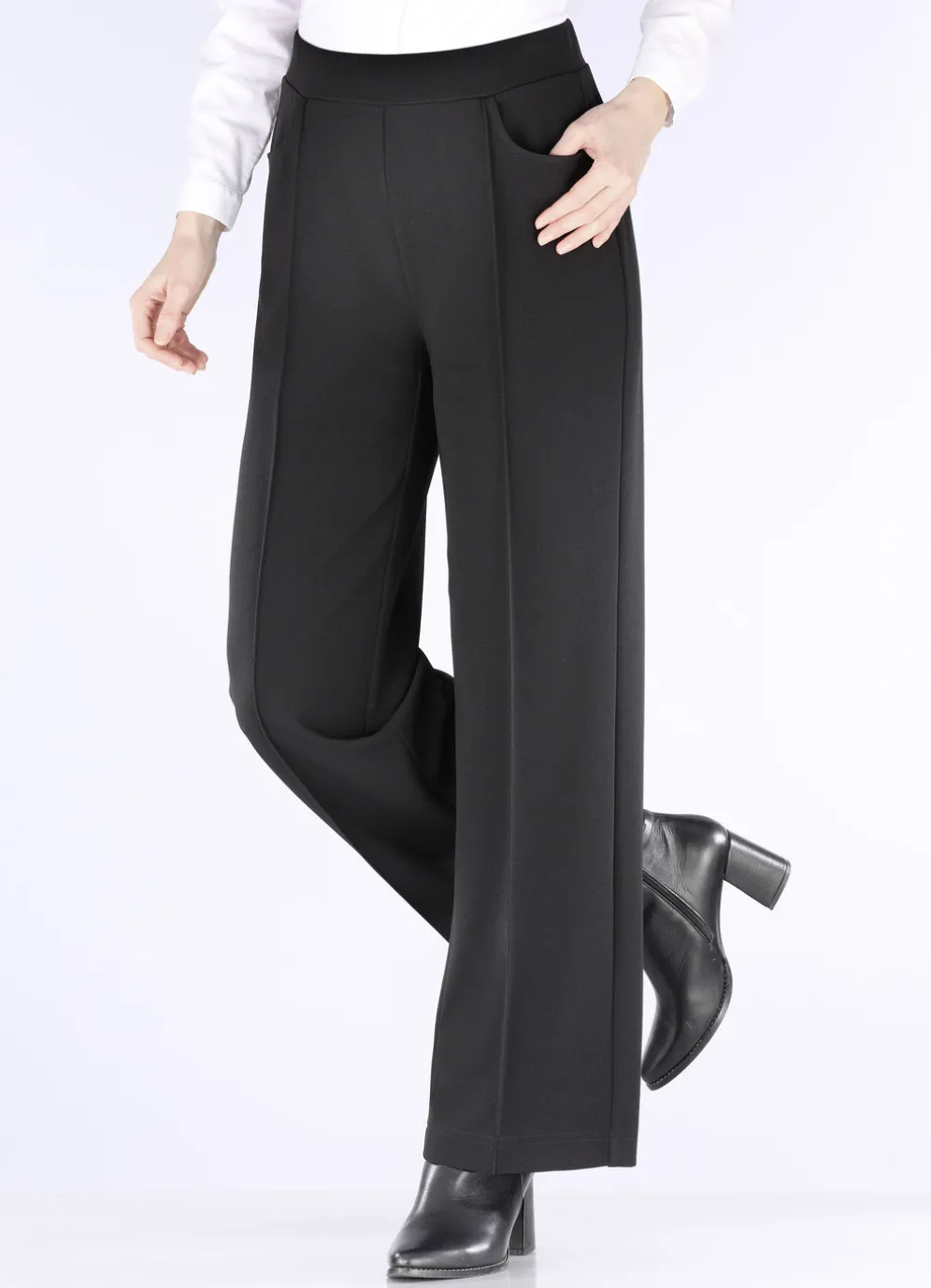 Trendgenaue Hose in modischer Weite: bequeme Schlupfform, glatt anliegend dank des innenliegenden Rundum-Dehnbundes, abgesteppte Biesen, die für eine streckende Optik sorgen sowie Seitentaschen. Innenbeinlänge ca. 76 cm, Fußweite ab 54 cm.