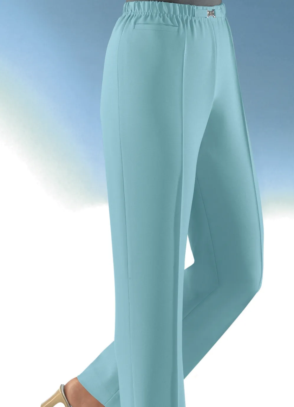 Hose in Schlupfform in 8 Farben in Helltürkis und in Größe 40.