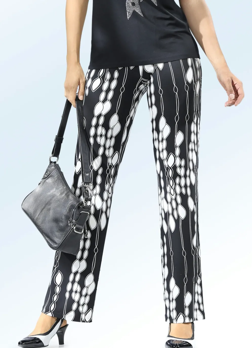 Hose mit farbrillantem Druck in Schwarz-Ecru und in Größe 19.