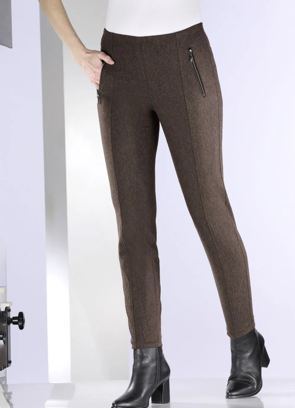 Hose mit Reißverschluss-Taschen in Cognac Meliert und in Größe 36.