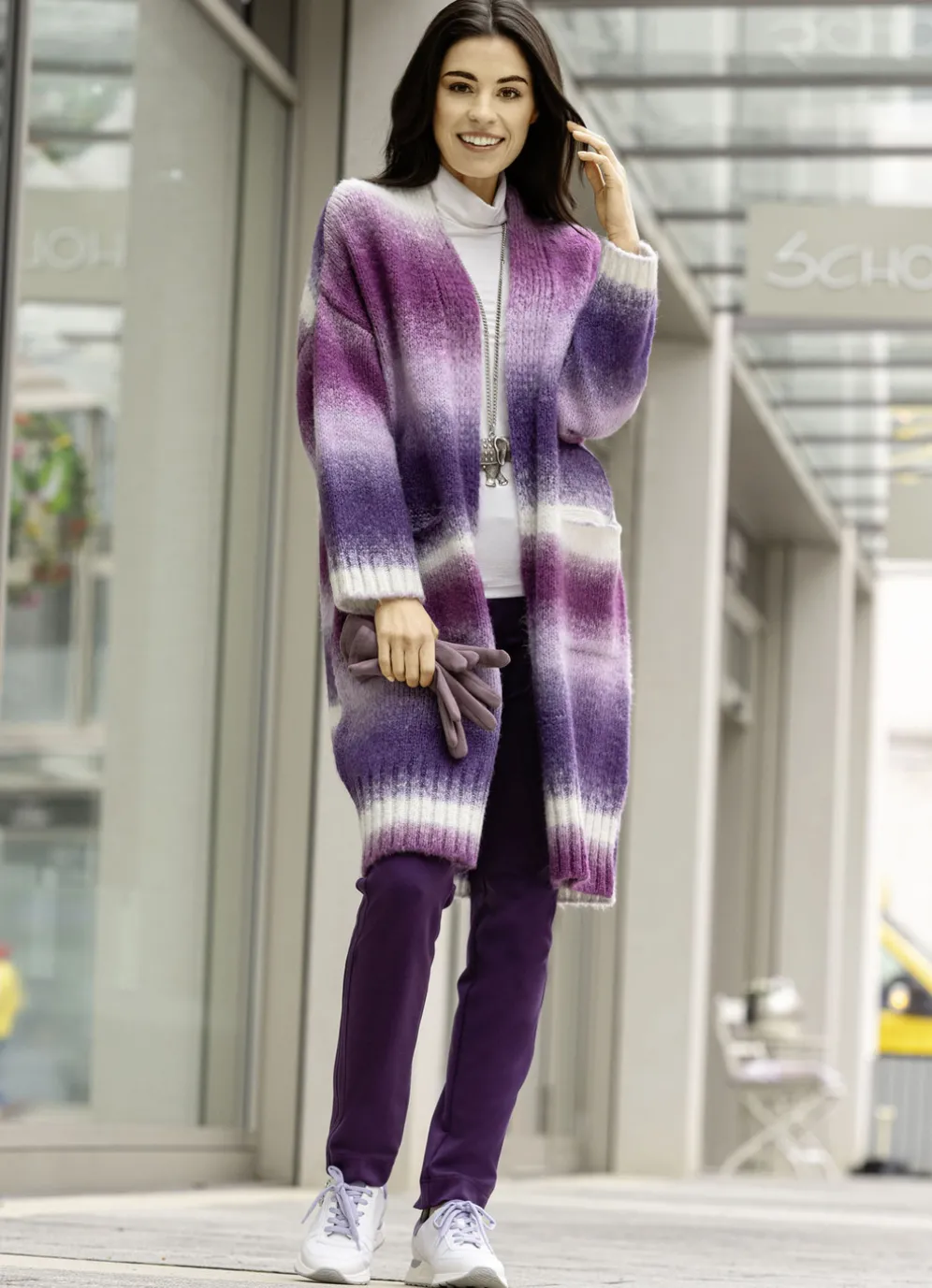 Trendgenaue, hochelastische Hose in Viola mit aktueller, schmaler Beinweite, die für eine schlanke Silhouette sorgt: komfortable Schlupfform, glatt anliegend dank des innenliegenden, unsichtbaren Rundum-Dehnbundes, vordere, paspelierte Taschen sowie Einsätze mit Teilungsnähten und dekorativen Ziersteppungen im Vorderteil sowie figurformende Passe im Rückteil. Innenbeinlänge ca. 76 cm, Fussweite ab 30 cm.