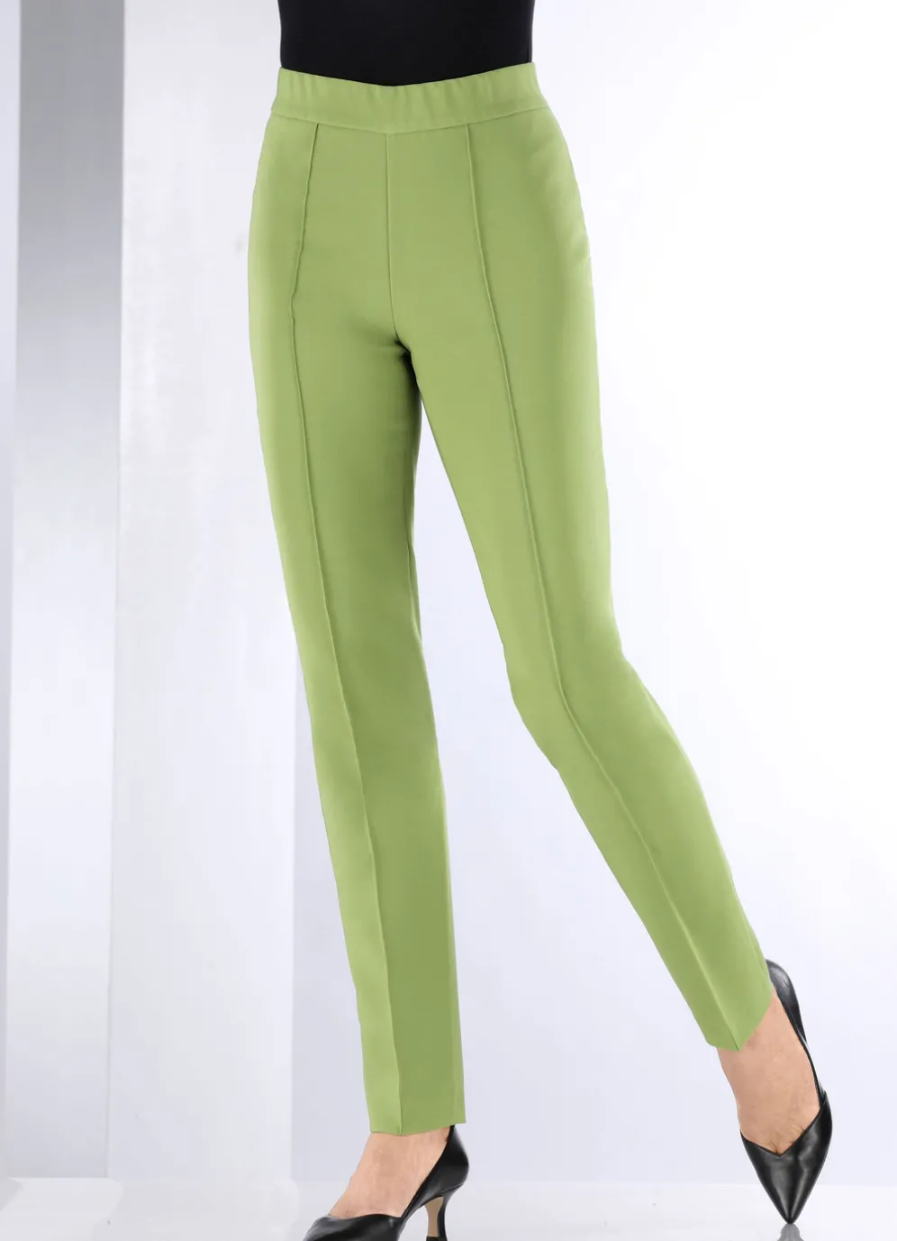 Ihr Modell BECKY – trendstarke, knöchellange Hose mit modisch schmaler Fußweite: komfortable Schlupfform dank des innenliegenden, unsichtbaren Rundum-Dehnbundes sowie abgesteppte Biesen im Vorderteil, die für eine schlanke Silhouette sorgen. Innenbeinlänge ca. 78 cm, Fußweite ab 34 cm.