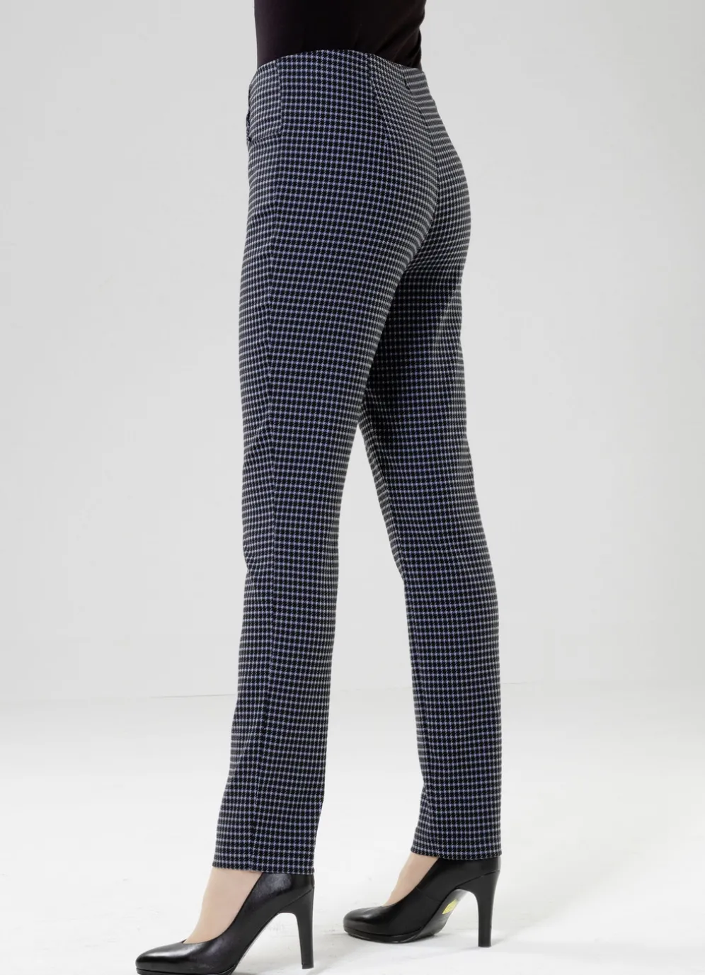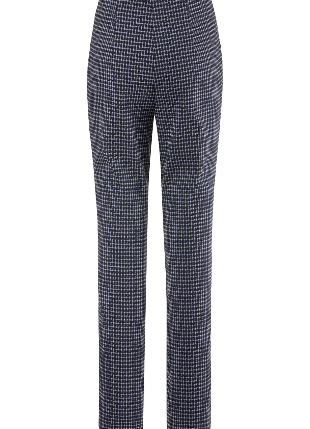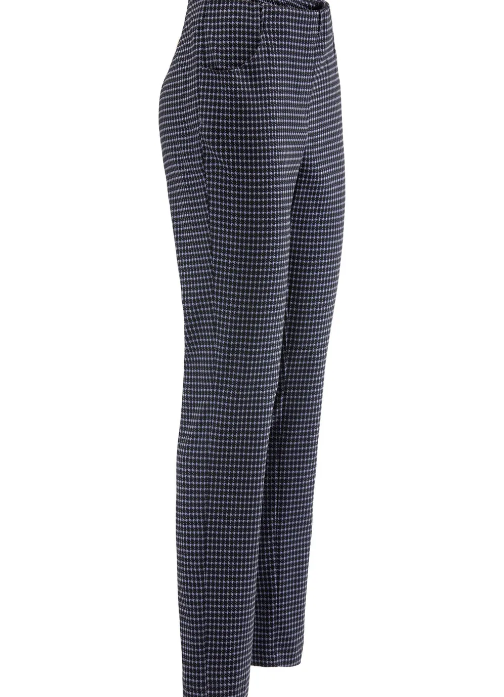 Hose mit trendiger Hahnentritt-Dessinerung in Blau-Schwarz und in Größe 18.