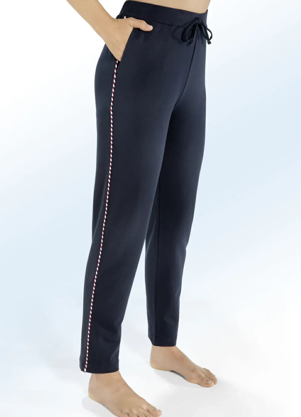 Komfortable PLANTIER-Hose in langer Form mit Tunnelzugband, zwei Seitennahttaschen sowie farblich gedrehter Kordel an der Seitennaht.