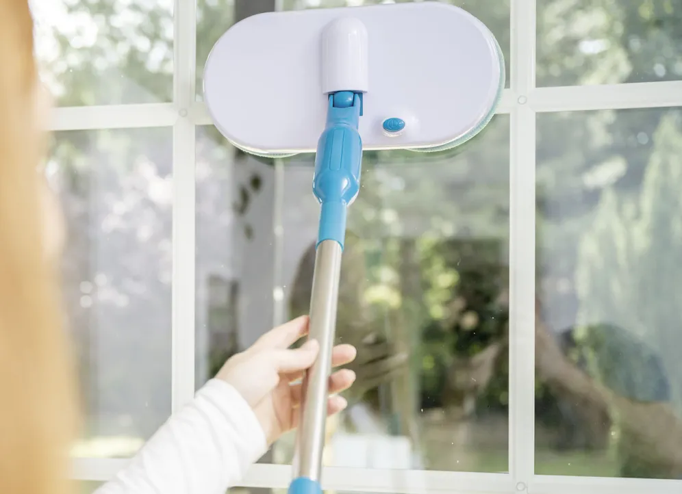 Vernichtet hartnäckigen Schmutz, Keime und Bakterien. Ohne Bücken und ohne Kraftaufwand. Ideal für alle Hartböden wie Laminat, Holz, Fliesen uvm. sowie empfindliche Oberflächen wie Duschwände, Badewanne und Fenster. Ermöglicht durch den Schwenkkopf vertikales und horizontales Putzen – ideal für Treppen. Passt problemlos unter Schränke, Betten, etc. Ohne Eimer, ohne Putzlappen. Wiegt nur 1,26 kg. Ohne lästiges Kabel. 7,4-Volt-Lithium-Ionen-Akku. Betriebsdauer bis zu 90 Min. Teleskopstiel bis auf 123 cm verlängerbar.
