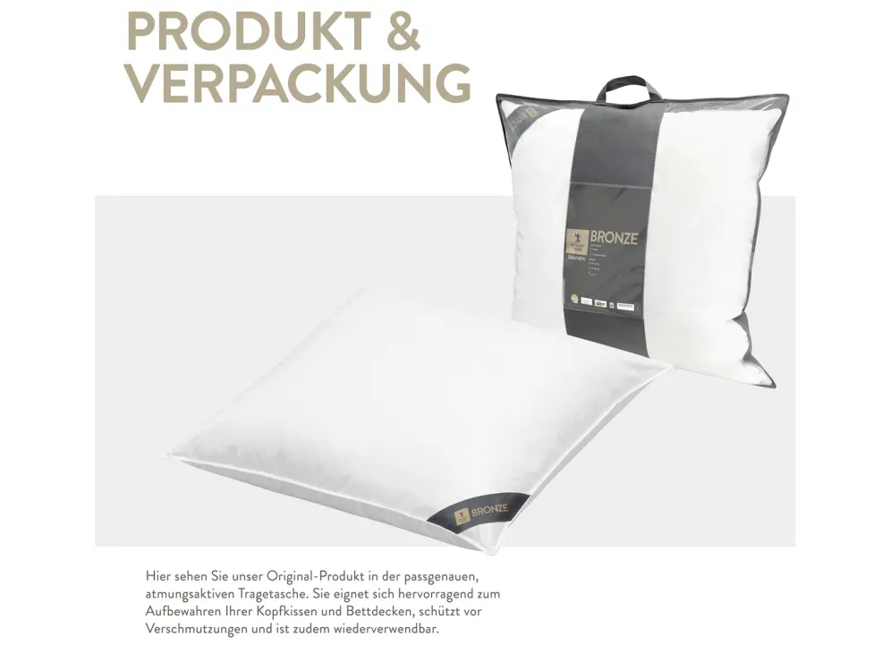 Bezug aus feinem Köper-Inlett (100% Baumwolle). Füllung 100% Federn