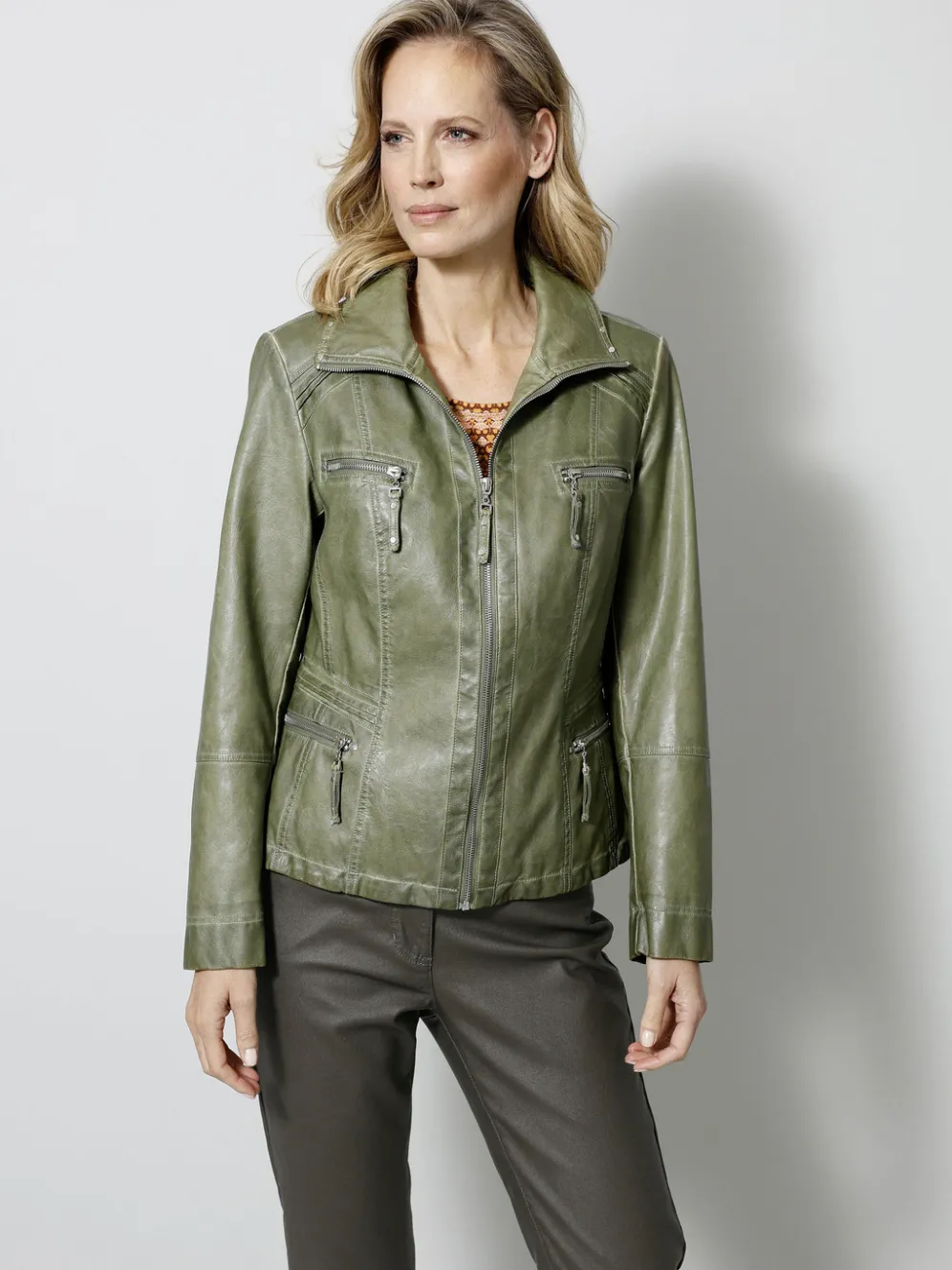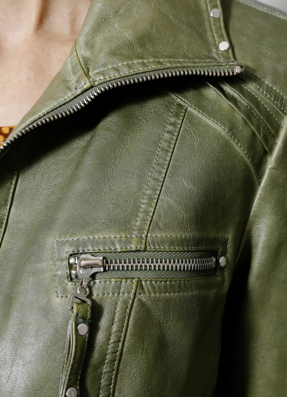 Jacke aus Lederimitat in Grün und in Größe 38.