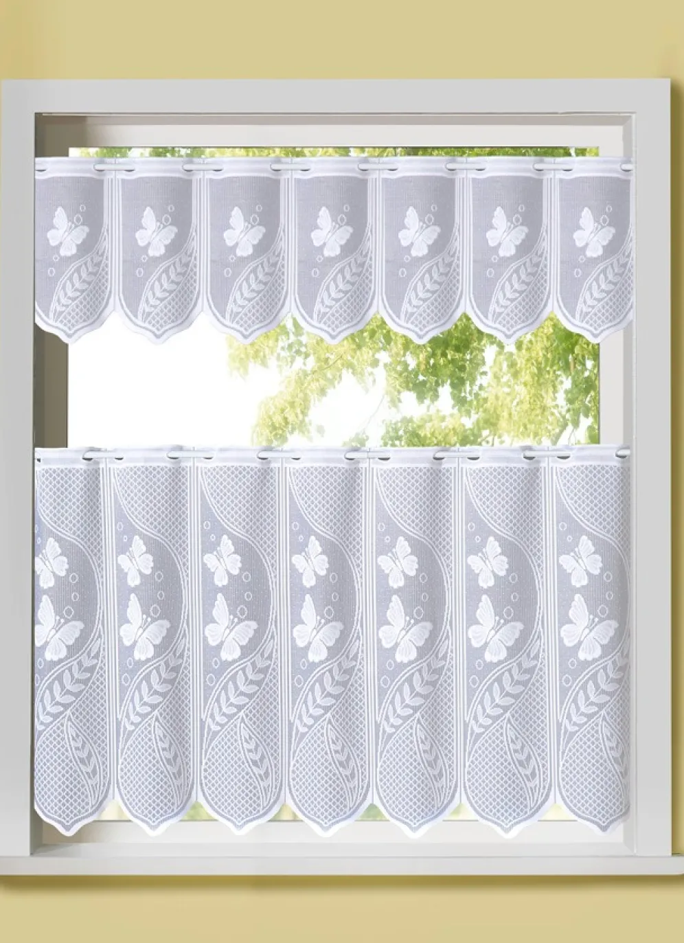 Mit seinem schönen Schmetterlings-Dessin verzaubert dieser herrliche Kurzstore mit Stangendurchzug jeden Raum.