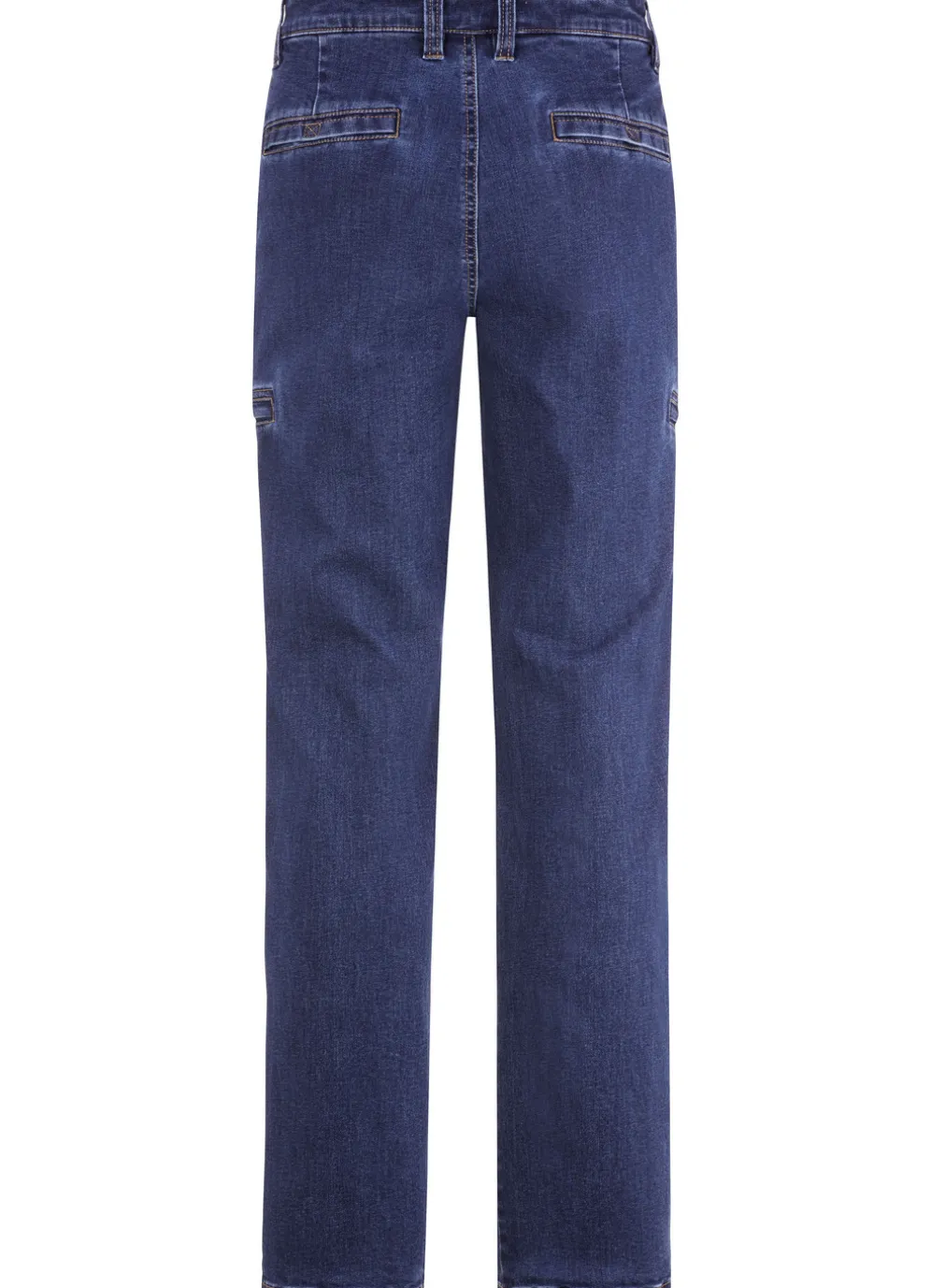 Jeans mit Cargotaschen in 2 Farben in Jeansblau und in Größe 25.