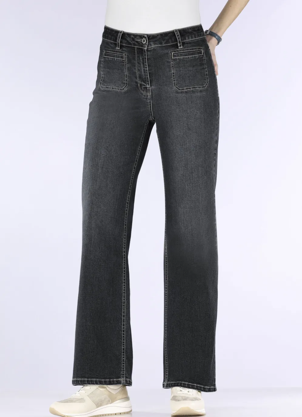Die Qualität: querelastischer, softer Stretch-Denim aus 70% Baumwolle, 25% Polyester, 3% Viskose und 2% Elasthan (Lycra®); in Schwarz aus 70% Baumwolle, 26% Polyester, 3% Viskose und 1% Elasthan (Lycra®)
