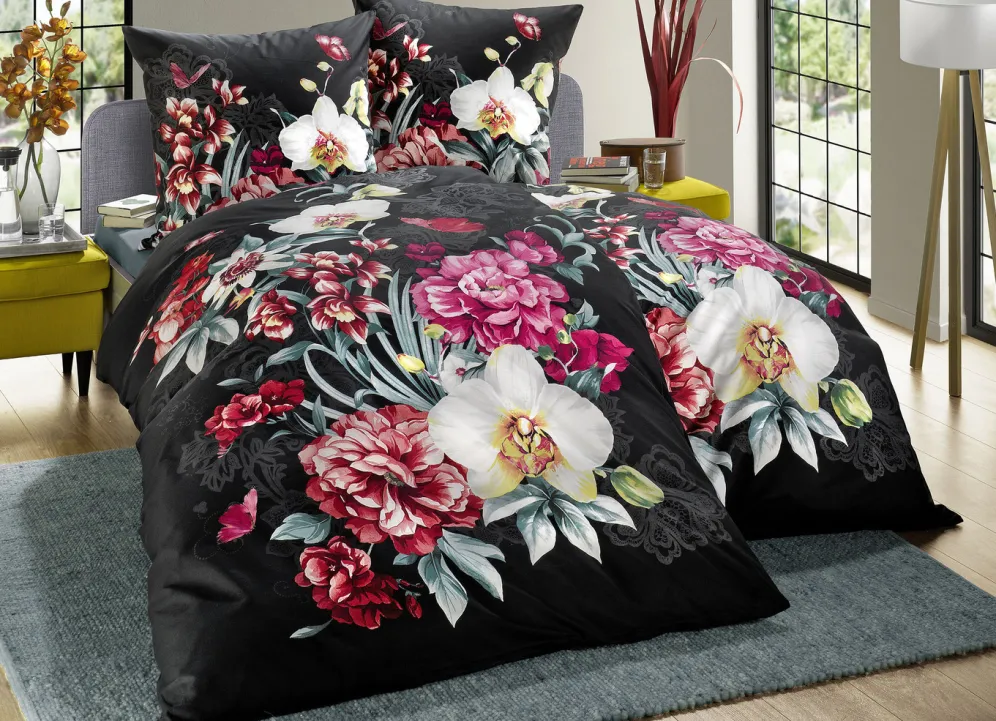 Ein wundervoller Blütentraum ist diese bequeme“Kaeppel“-Bettwäsche-Garnitur! Mit praktischem Reißverschluss gefertigt. Qualität: Renforcé aus 100% Baumwolle. Waschbar bis 60 °C und trocknergeeignet.