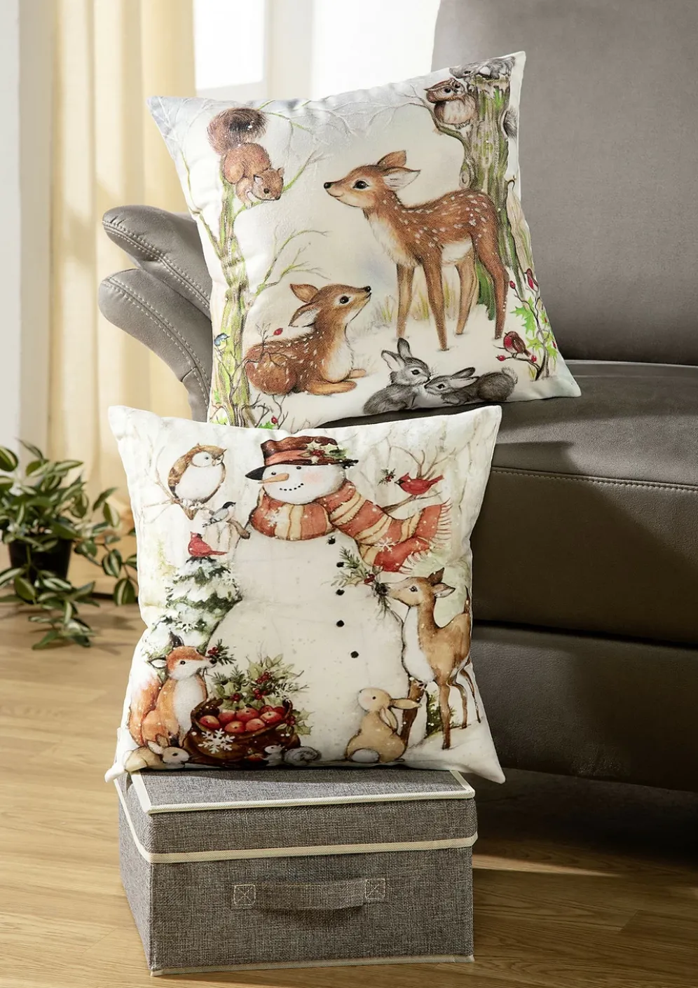 Kissenbezug mit bezaubernden Winterszenen in der Ausführung Waldtiere.