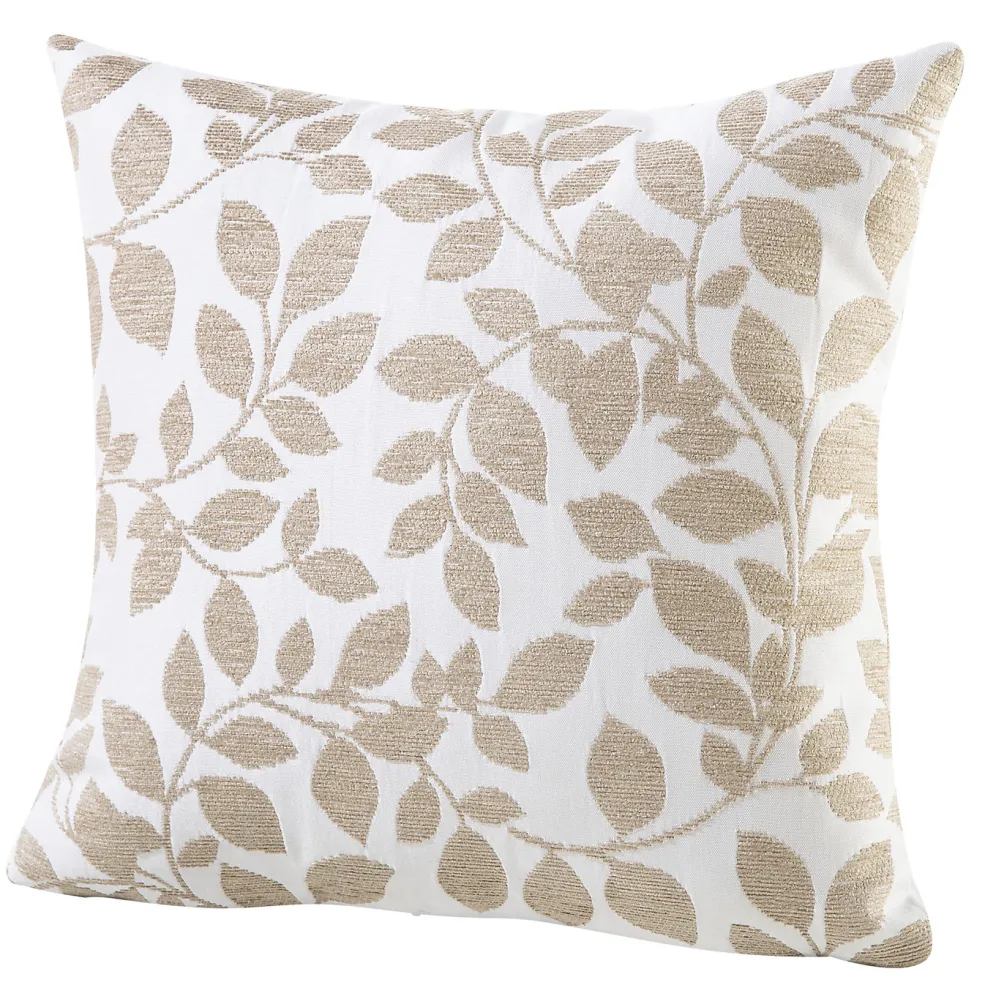 Kissenbezug mit hübschem Blättermotiv in Größe 905 (Kissenbezug, 38×38 cm) und in Weiss-Gold.