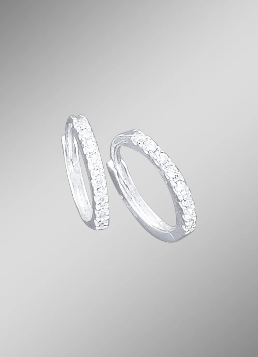 Diese wunderschönen Klappcreolen bezaubern durch ihre schlichten Eleganz. Sie haben einen Durchmesser von 12 mm und sind aufgrund ihrer Größe für den Alltag perfekt geeignet. Der feine Ohrschmuck aus Weißgold 585/- fein ist mit 16 Brillanten, zusammen 0,10 ct., Weiß, Piqué 2, besetzt.