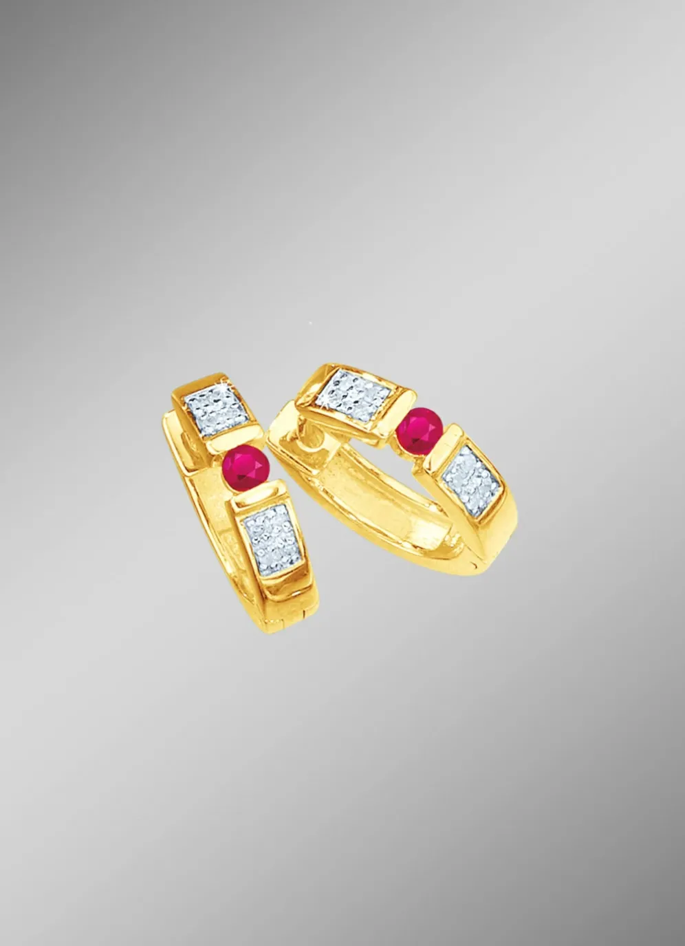 Klappcreolen mit Rubin und Diamanten in der Legierung Gold 333/- fein.