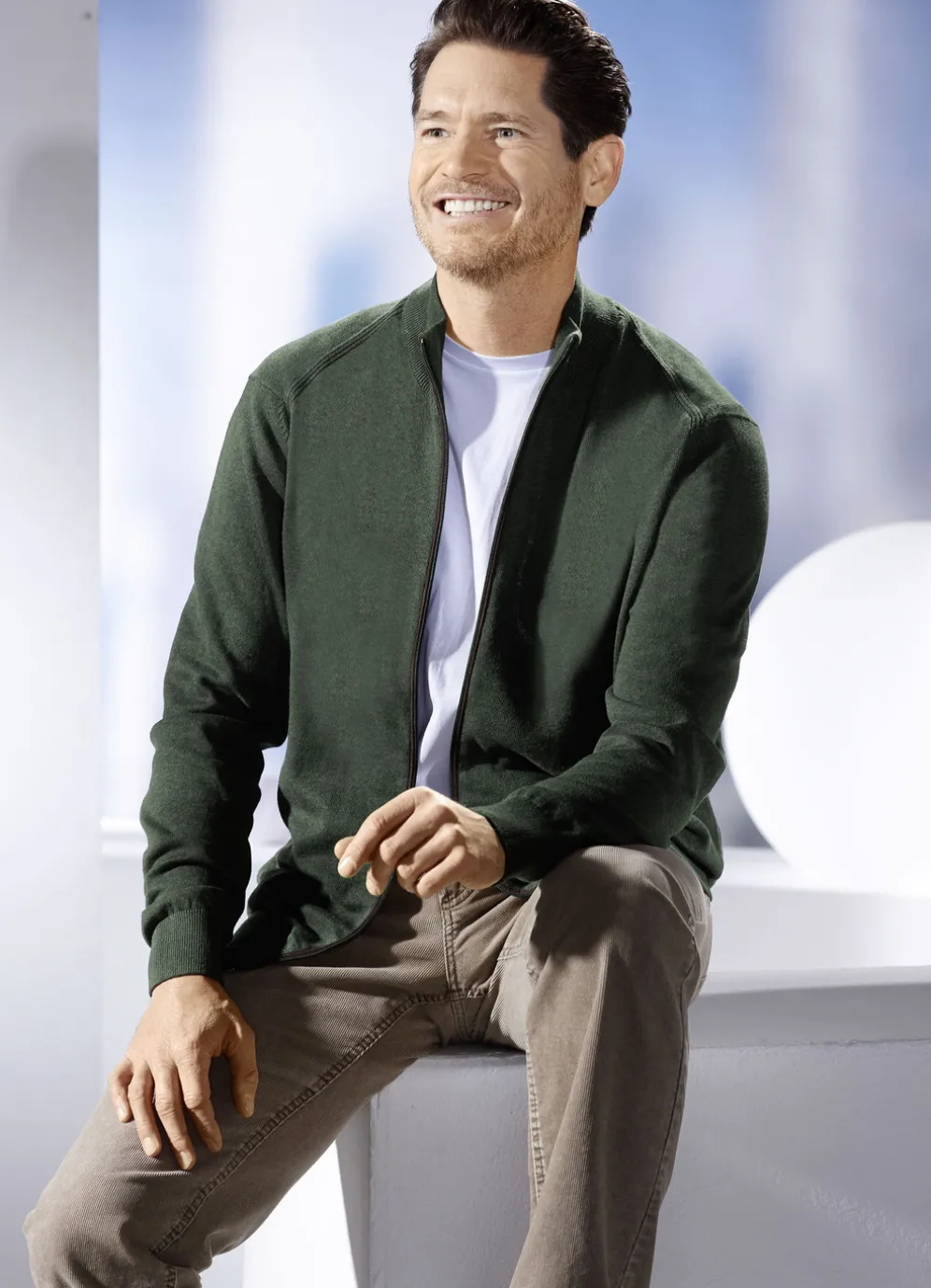 Klassische „King‘s Road“-Jacke mit Paspelierung in Wildlederoptik am durchgehenden Reißverschluss, langen Ärmeln sowie Rippenstrick-Abschlüssen.