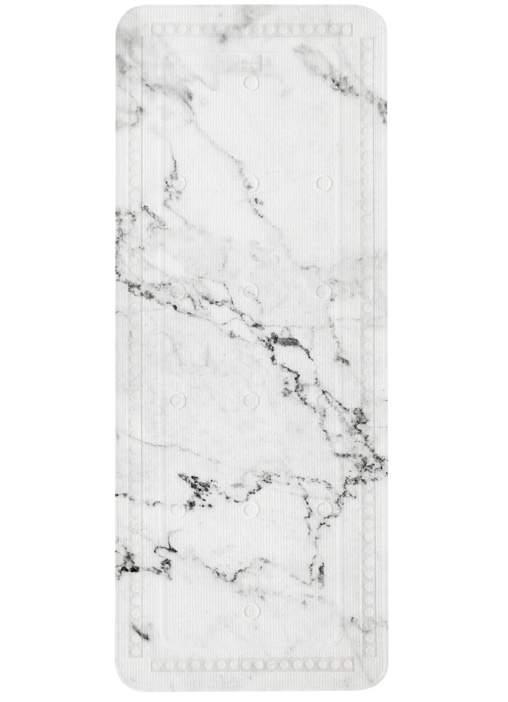 Mit einem Marmor-Dessin sind diese Sicherheits-Einlagen von „Kleine Wolke“ gestaltet, welche für höhere Sicherheit beim Duschen und Baden sorgen sollen. Die Qualität: 100% Polyvinylchlorid. Waschbar bis 40 °C.