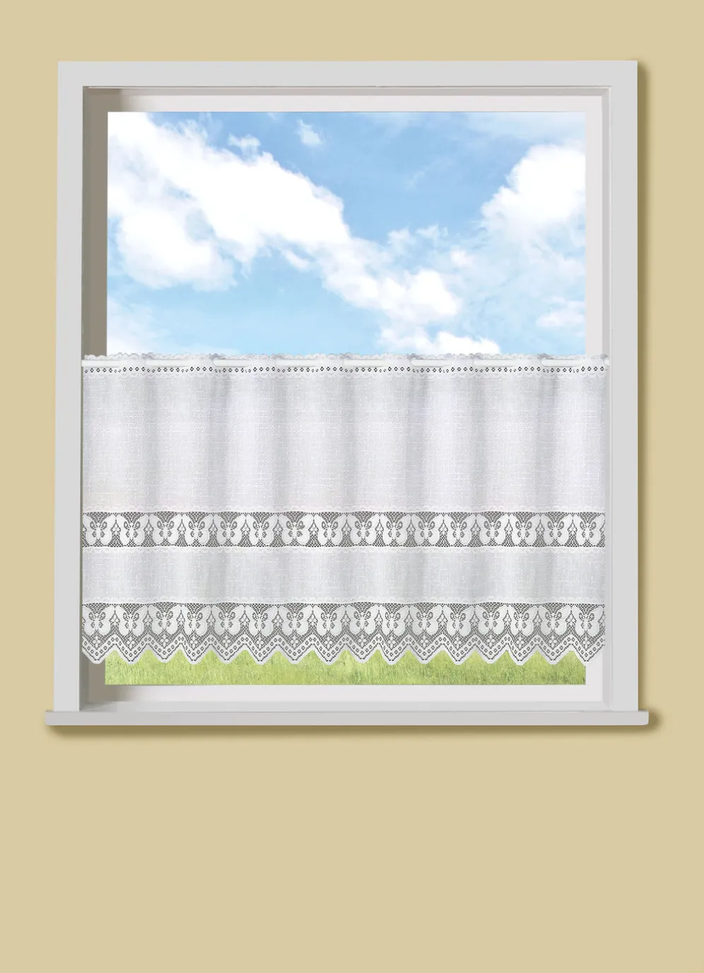 Kleinfenster-Store mit gezacktem Abschluss und Stangendurchzug