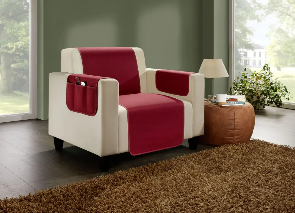 Kombistarke Wohnaccessoires mit Anti-Rutsch-Beschichtung in Größe 865 (2 Armlehnenschoner, 2x 38x 55 cm) und in Bordeaux.