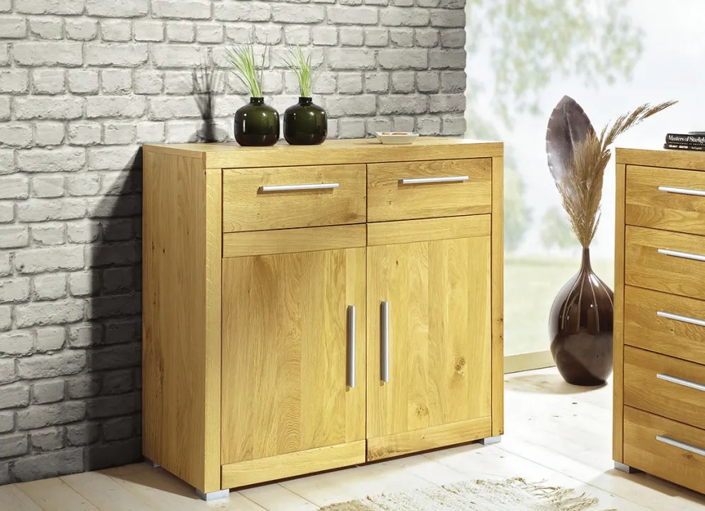 Kommode mit massiver Front in der Ausführung Kommode mit 2 Türen und in Wildeiche.